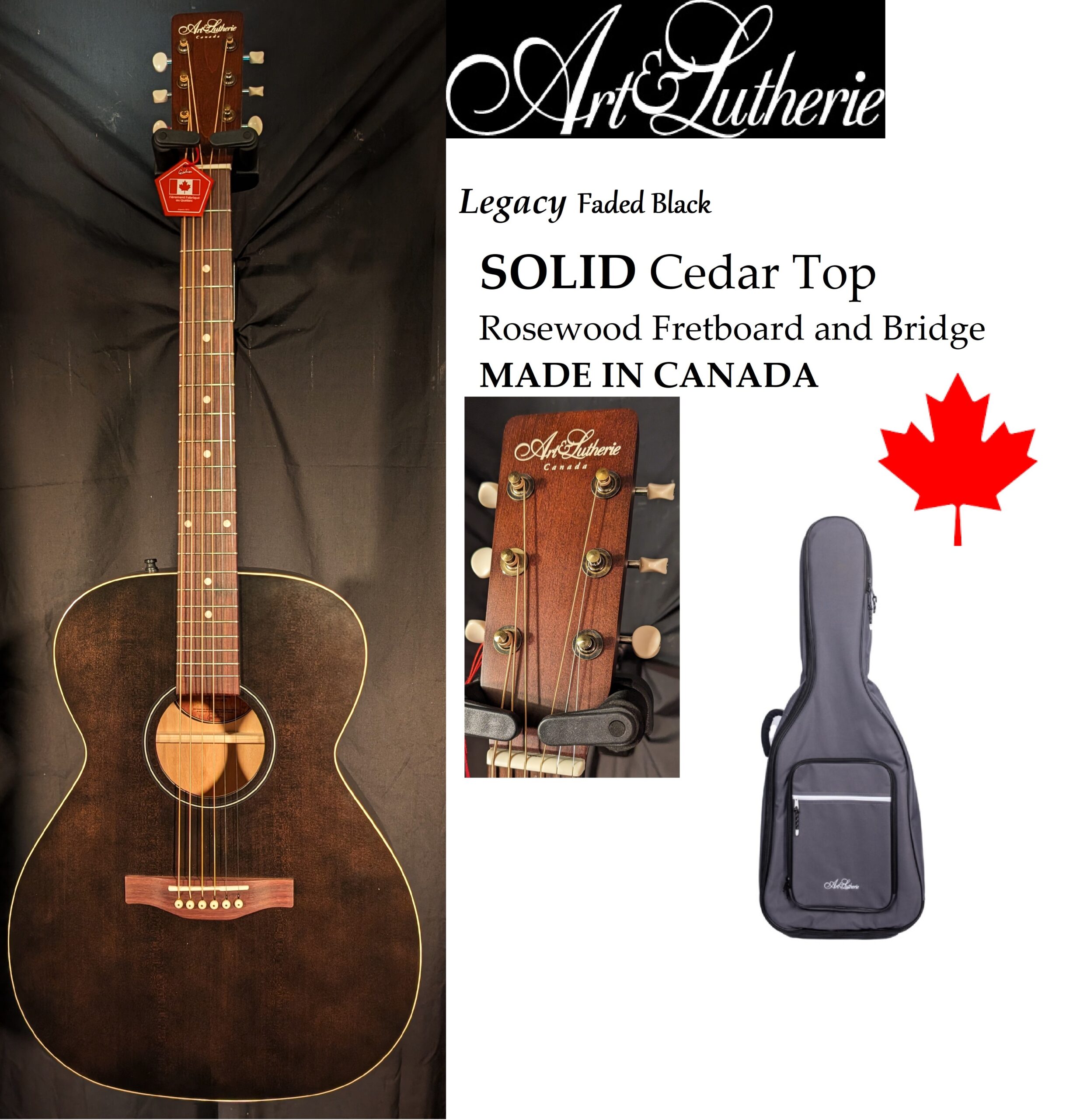 Art Lutherie Legacy Faded Black Folk Size Guitar with SOLID Cedar Top Rosewood Fretboard and Bridge Wild Canadian Cherry Back&Sides.Includes Gig Bag No Charge $109 Value.MADE IN CANADA