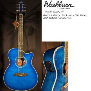 Oscar Schmidt.Washburn Flame Maple Cutaway Acoustic-Electric Guitar – (Blue)