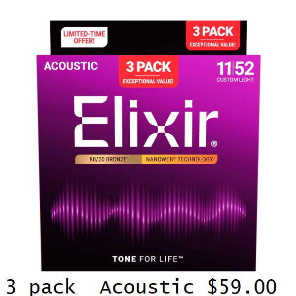 / Elixir Acoustic 80/20 Bronze w/ NANOWEB® Coating – 3Pk 11027