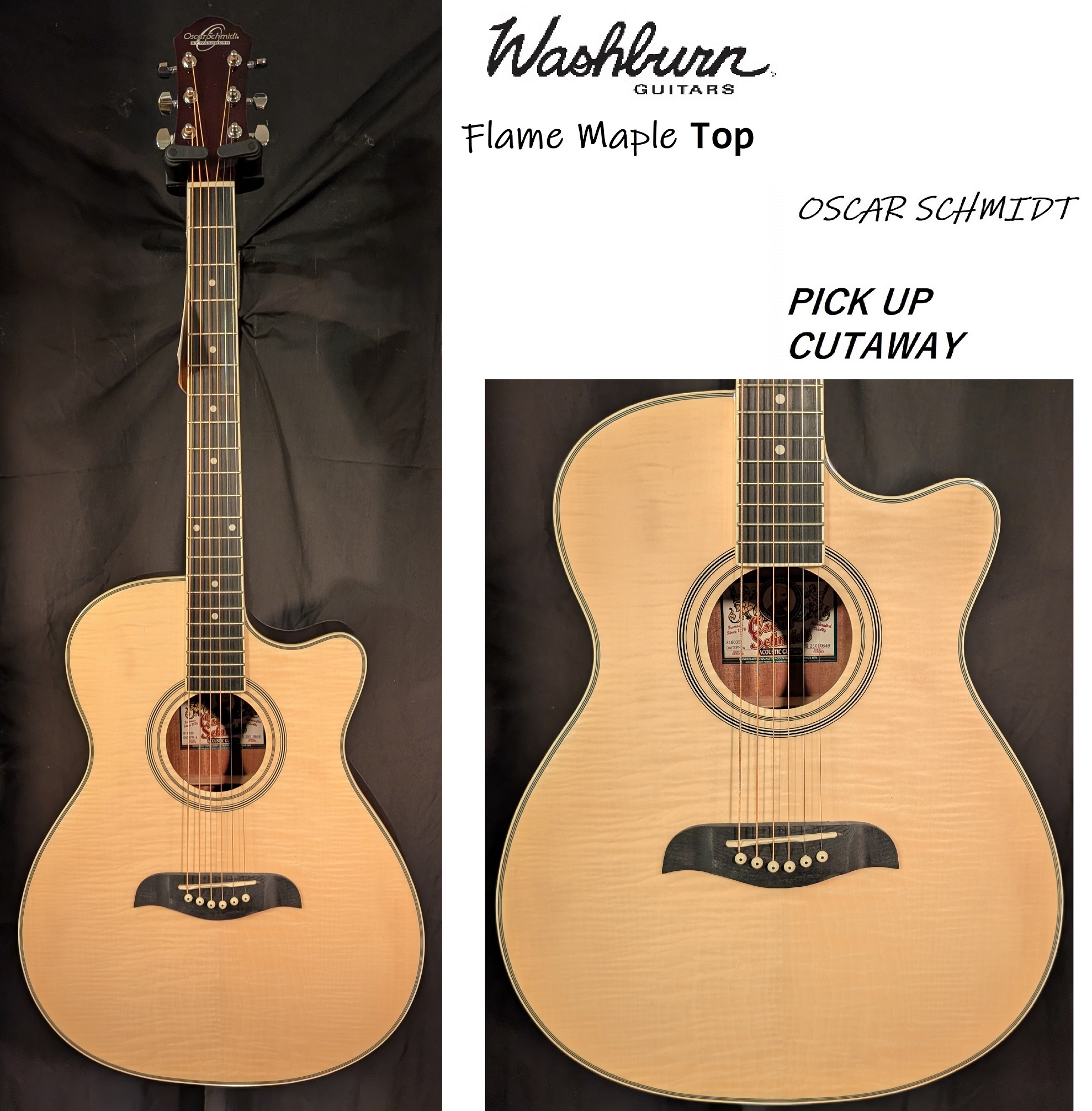 / Washburn Oscar Schmidt Auditorium Style Acoustic-Electric Guitar – Flame Natural