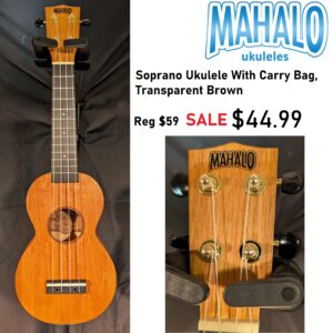 Soprano Ukulele With Carry Bag, Transparent Brown