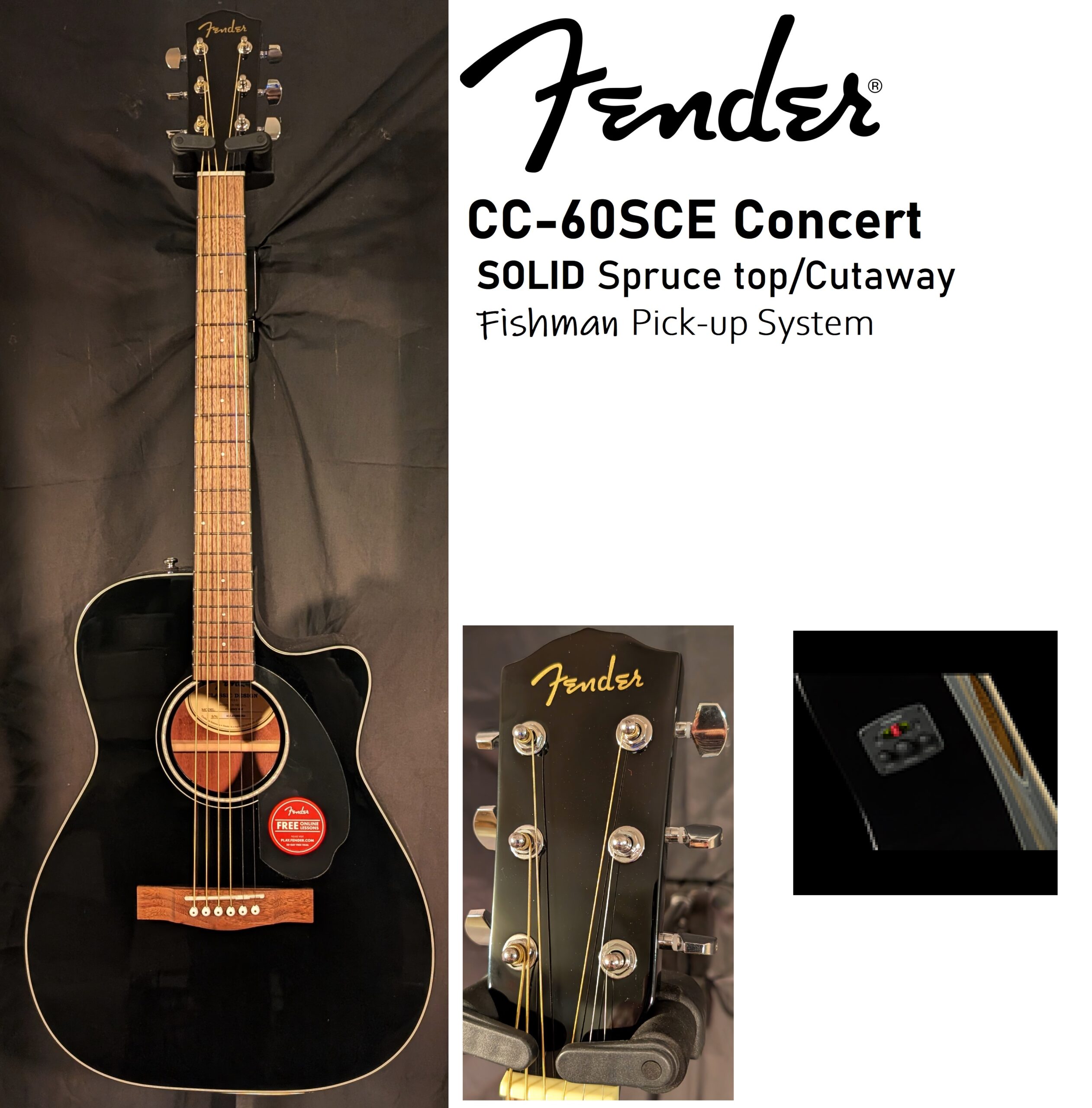 Fender CC-60 Concert Size SOLID Spruce top/Cutaway/Pick-up