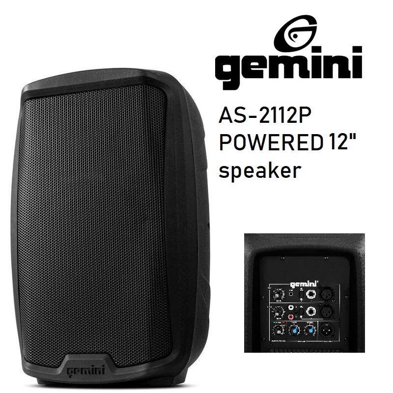 Gemini 1500 Watt Powered 12โ Loudspeaker .This lightweight, ultra-efficient powered speaker is designed for optimal performance, no matter where you take it. The Gemini AS-2112P is a 2-way full-range PA speaker with room-filling sound in a compact durable enclosure. Its 12โ low-frequency driver with a 2โ voice coil and pure titanium 1โ high-frequency compression driver provide the perfect combination of deep low and crystal-clear high frequencies. With so much power under the hood in a compact package, it is perfect for any occasion at a price that Gemini is proud to say cannot be beaten. PERFECT SOUND FOR YOUR PERFORMANCE: With a 1500