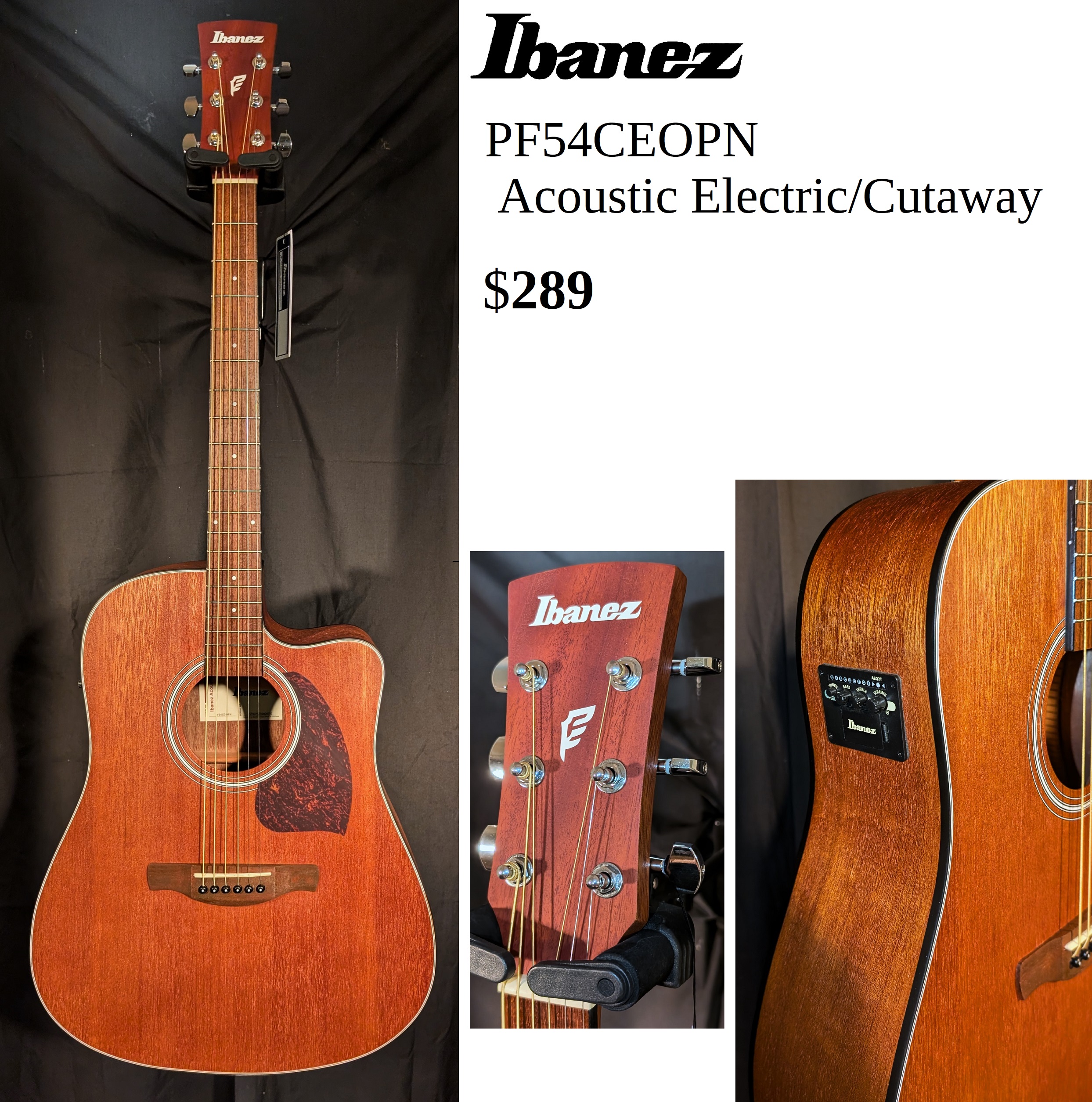 Ibanez PF54CEOPN Acoustic Electric with Cutaway Dreadnought Body,Diecast tuners,With AEQ-2T preamp is specifically-designed to adjust the frequencies of a bass and a treble, and allows operation of the built-in tuner